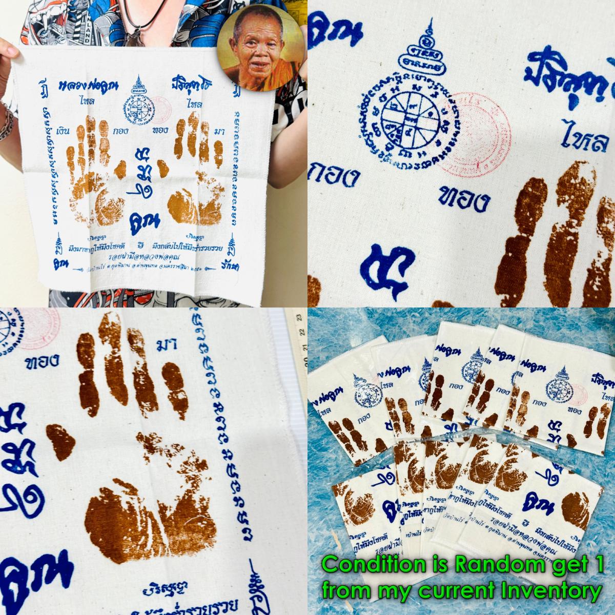 Item 名稱: Hand Print Fablic Cloth Flag Money Wealth Rich LP Koon Be2551 Thai Amulet #17037.