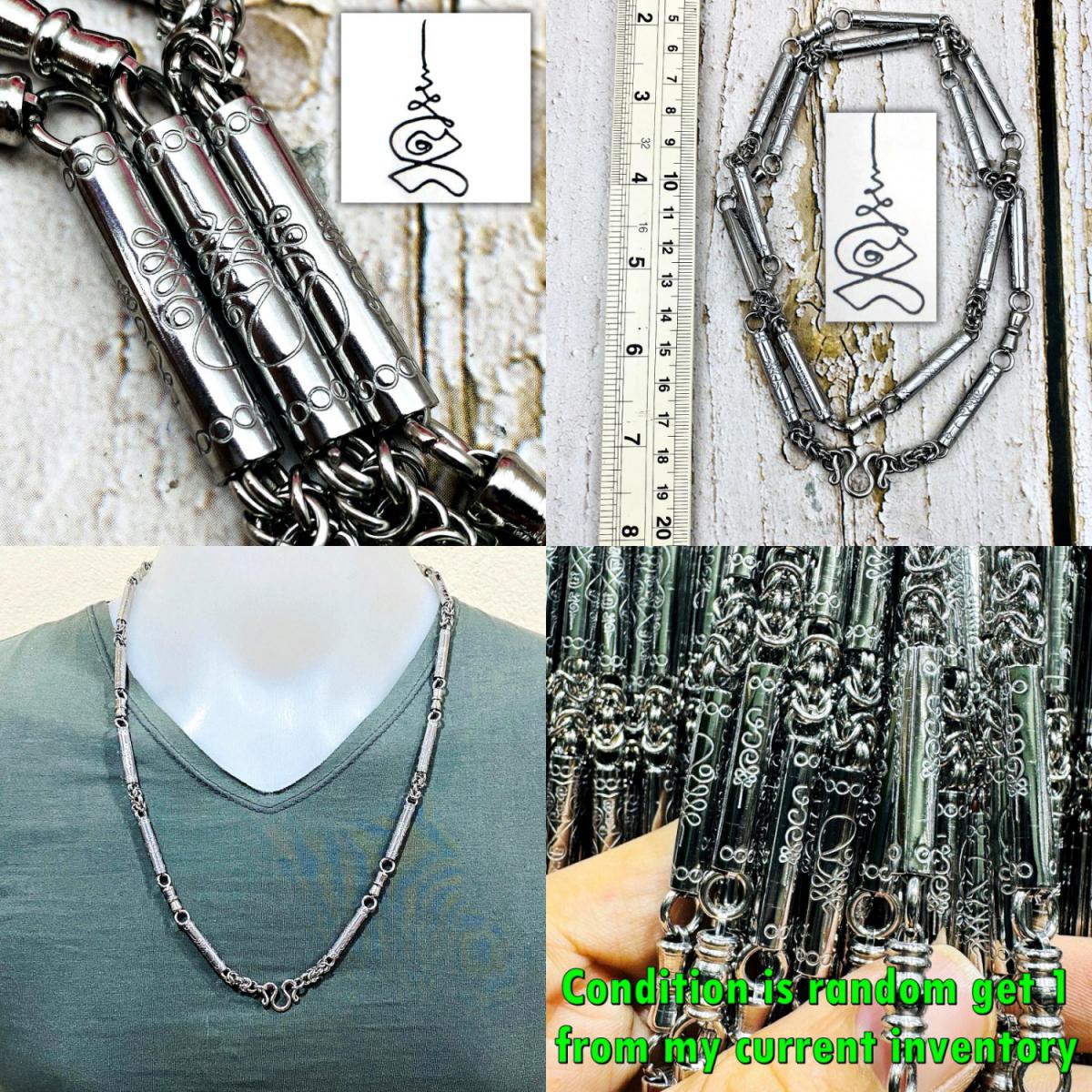 Item : Yantra Wishes Lucky Necklace Stainless Steel Multi Hook 30cm Thai Amulets #18568.