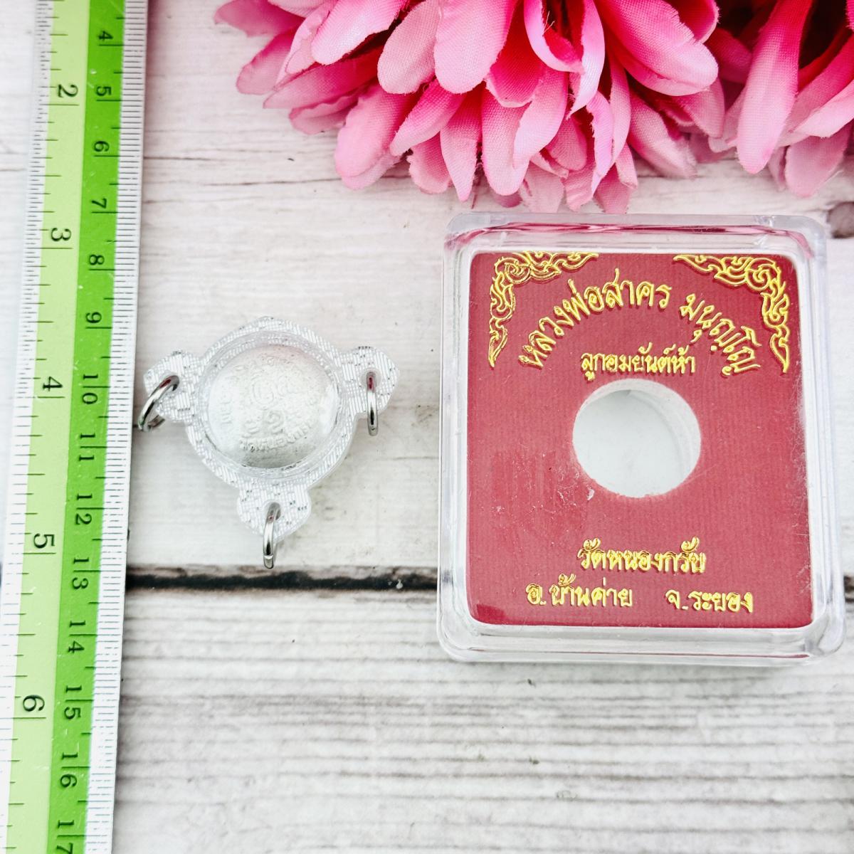 The famous Look Om Pong Plai Kumarn of LP Sakorn, Wat Nong Grub, from the now extremely preferred and highly sought after 73th anniversary edition, which contained a large quantity of some of the very last remaining Pong Plai Kumarn Powders of LP Tim. The amulets of Luang Por Sakorn are now an extreme rarity since the Passing Away of the Great Luang Por Sakorn, and prices are rising so fast to approach those of his predecessor and mentor Luang Pu Tim Issarigo, of Wat Laharn Rai.