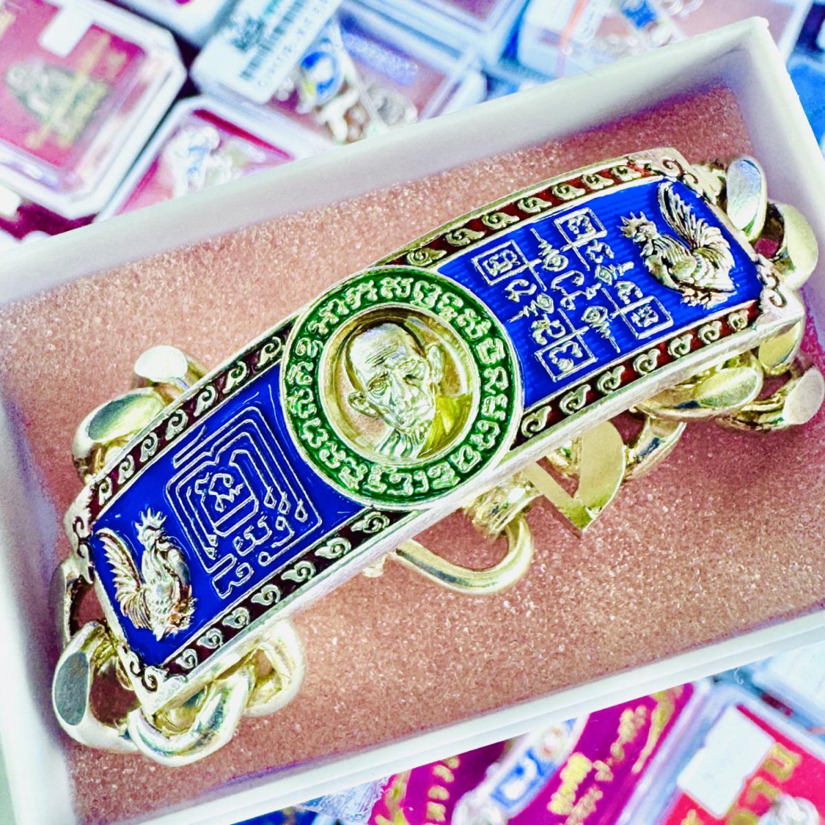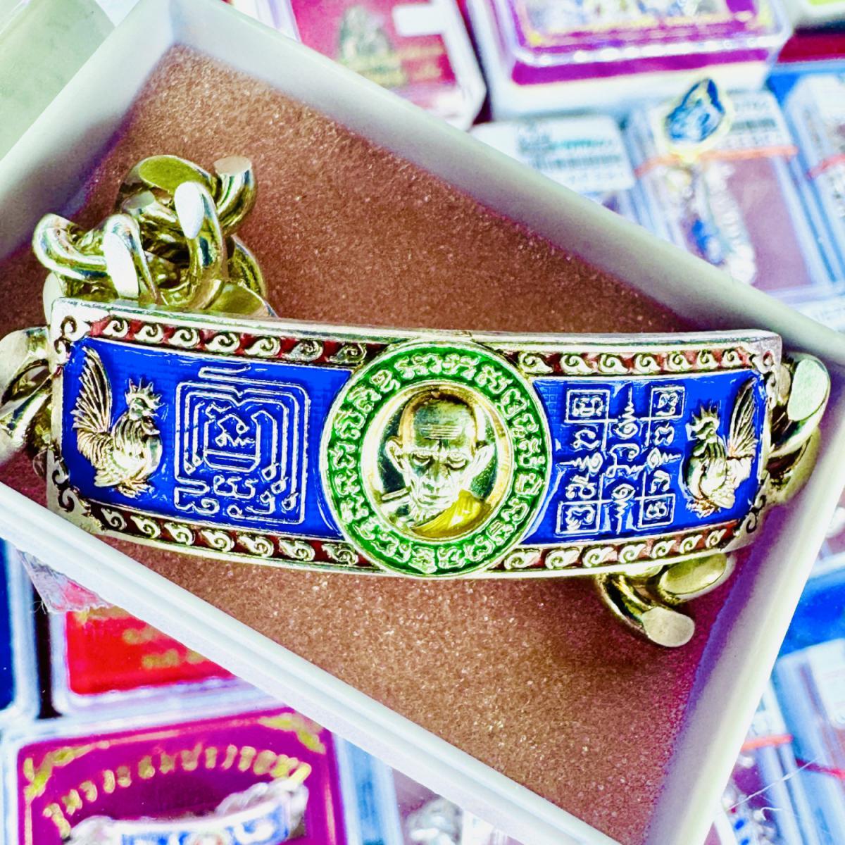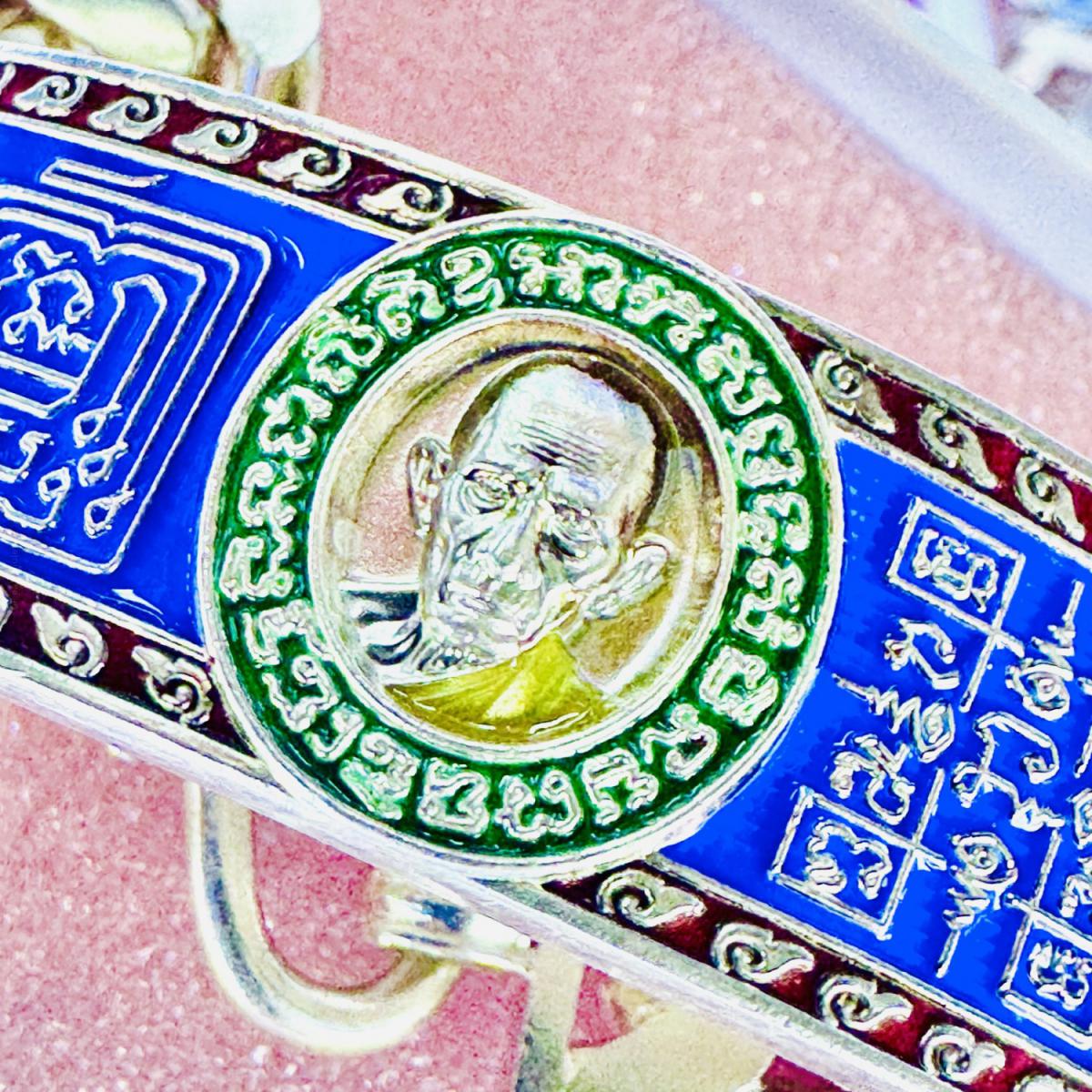 หลวงพ่อรวย พระเกจิที่เปี่ยมเมตตาธรรม พระนักปฏิบัติ เชี่ยวชาญสรรพเวทวิทยาคม ชื่อขอ “หลวงพ่อรวย” ถือว่าเป็นมงคลนาม สื่อความหมายถึงความมั่งคั่ง มั่งมีเงินทอง เลสเนื้อเงินแท้ลงยานาชวดีฝีมือชั้นครู สวยคม ดีไซน์ลวดลายอักขระเลขยันต์ สุดอ่อนช้อย สวยงาม เข้มขลัง สื่อถึงความเป็นไทยได้อย่างชัดเจน ดีไซน์การออกแบบที่เป็นเอกลักษณ์เฉพาะ โดดเด่นไม่ซ้ำใคร ด้านหน้าเลสมีไก่ 2 ตัว สัตว์สัญลักษณ์แห่งความขยันทำมาหากิน บ่งบอกถึงการมีกินมีใช้ไม่ขาดสาย