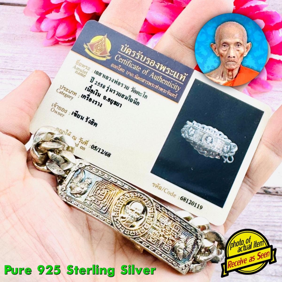 Item 名稱: Certificate Sterling Silver Bracelet SomJaiNeig Ruay Be2558 Thai Amulet #18599.