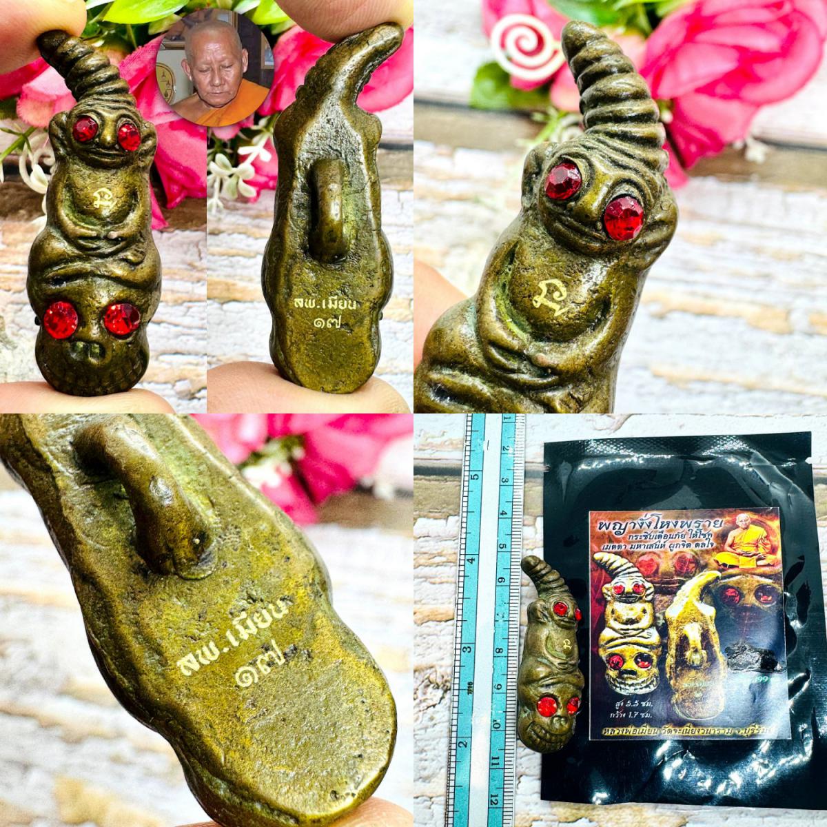 Item 名稱: Ngung Red Eye Skull Bronze Miniature Wealth Gambling Lust Mien Thai Amulet 18606.