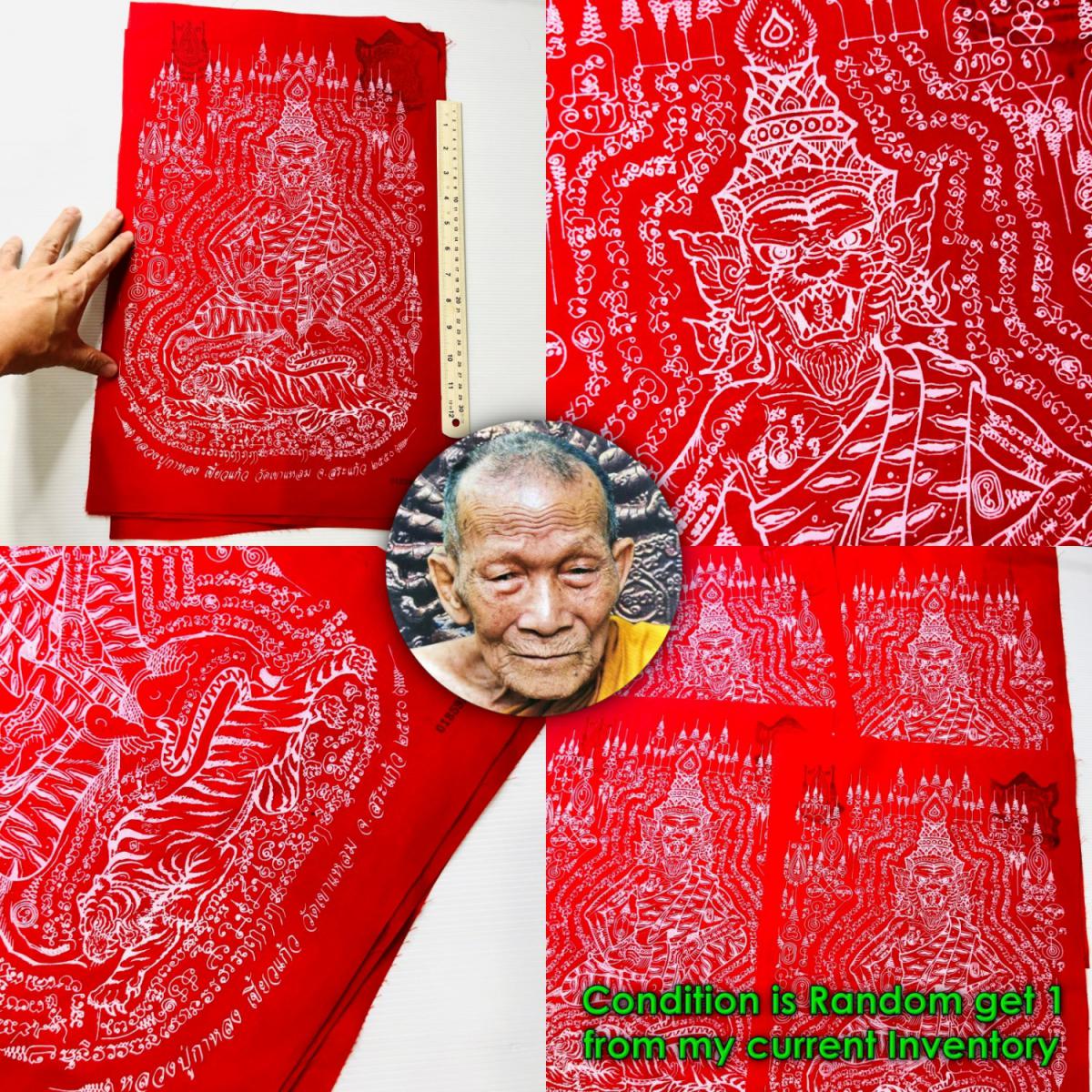Item 名稱: Holy Flag Cloth Tiger Face Lersri Control Mind Luck Red Kalong Thai Amulet 18636.